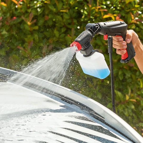 Stumkite, kol išgirsite spragtelėjimą, kad prijungtumėte 360° antgalį prie valymo įrenginio ir valykite patogiai. Pistoletas lengvai valdomas viena ranka, todėl juo lengvai nuplausite lengvus elementus, pvz., vaikų žaislus. Sunkiai pasiekiamose vietose, pvz., po palangėmis reguliuojamas 360 ° pasisukantis antgalis nukreips vandens srautą ten, kur reikia. Reguliuojamas plokščio purškimo antgalis užtikrina galingą vandens srautą naudojant siaurą purškimo nustatymą, kad nuplautumėte sunkiai pašalinamus nešvarumus, o naudojant švelnesnį, platų purškimą, galėsite pašalinti nešvarumus nuo įvairių paviršių.
