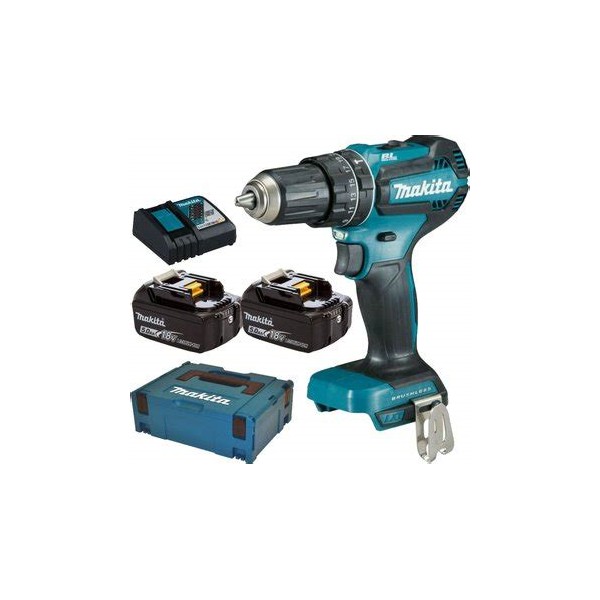 Komplektacija: baterinis smūginis gręžtuvas, 2 x 5,0Ah baterijos, DC18RC greito krovimo kroviklis, kablys įrankio tvirtinimui prie diržo, naudojimo instrukcija, plastikinis lagaminas MakPak Nr.2