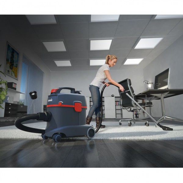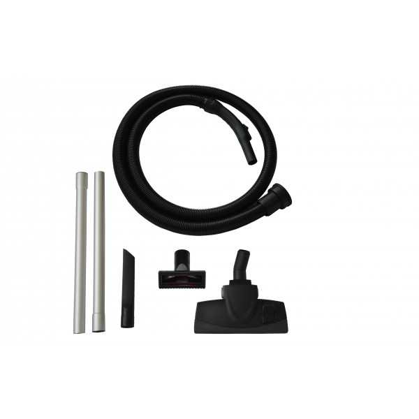 Komplektacija: dulkių siurblys, 1 x 2500 mm žarna, 1 x 250 mm plastiknė rankena, 2 x aliuminiai 500 mm ilgio vamzdžiai, 1 x 230 mm ilgio antgalis grindims, 1 x 100 mm pločio antgalis gobelenui, 1 x FBV11/14 medžiaginis maišas dulkėms, HEPA filtras, naudojimo instrukcija, kartoninė dėžė.