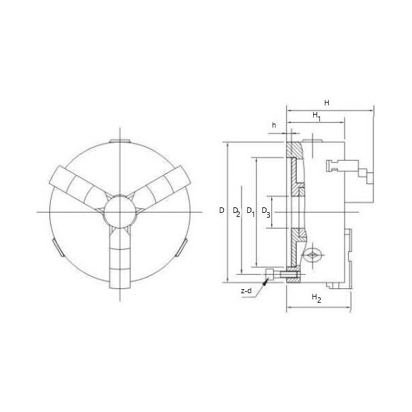 Komplektacija: tekinimo griebtuvas, 3 pagrindiniai kumšteliai, 3 atbuliniai kumšteliai, raktas griebtuvui, 6 x M12 tvirtinimo varžtai, kartoninė dėžė.