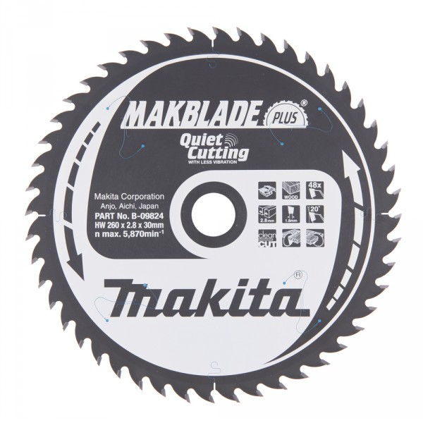 Diskas medienos pjovimui MAKITA Makblade Plus 260*30 mm Z70
