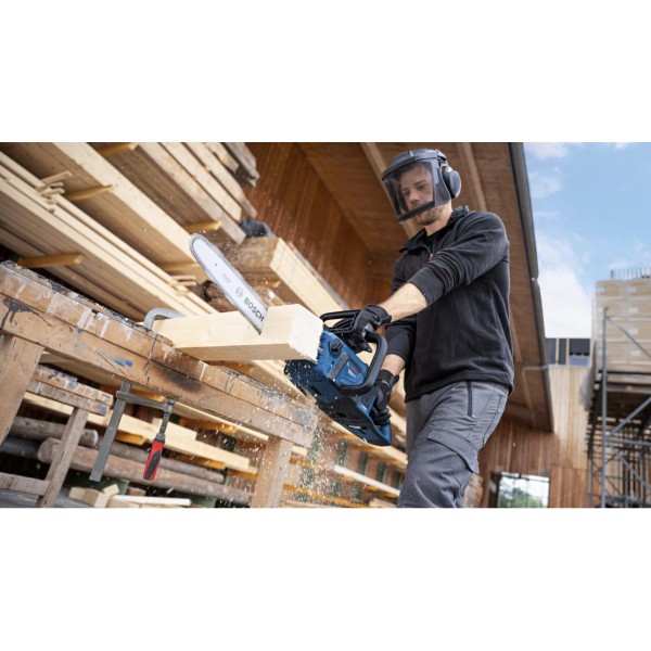 40 cm ilgio pjovimo juosta leidžia nepertraukiamai pjauti sijas, rąstus ir storas šakas, todėl tai puikus įrankis įvairiems darbams atlikti. Tai grandininis pjūklas, kurį lengva paleisti, jam nereikia daug priežiūros ir išsiskiria ilga eksploatavimo trukme. Gali būti naudojamas su „Bosch Professional 18V System“ ir įvairių gamintojų susivienijimo „AMPShare“ akumuliatoriais.