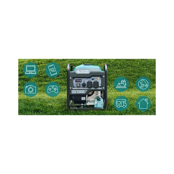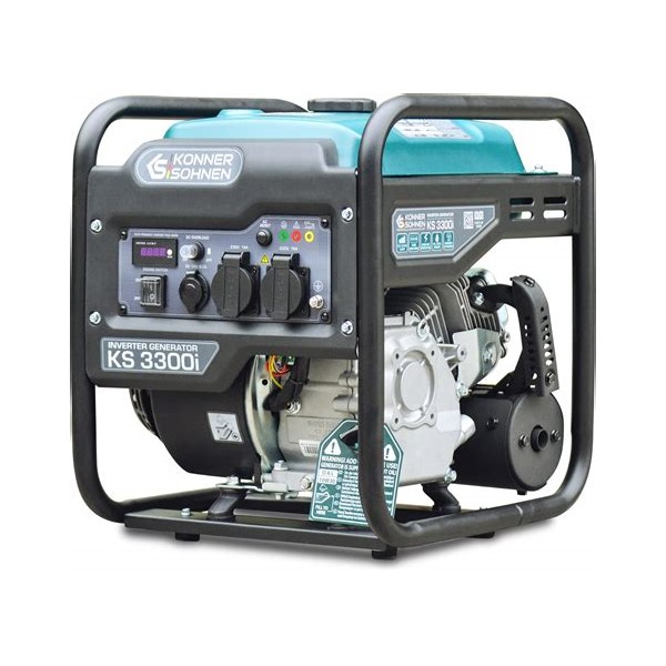 Könner & Söhnen inverterinis generatorius KS 3300i užtikrina stabilų ir patikimą elektros energijos tiekimą visiems jūsų poreikiams bei idealiai tinka jautriai elektronikai su 230 V 50 Hz grynos sinusoidės įtampa. Jo tvirtas, EURO V reikalavimus atitinkantis variklis, užtikrina ilgalaikį veikimą, o lengvai naudojamame valdymo skydelyje yra įmontuotas ekonominis režimas, kuris gali sumažinti degalų sąnaudas iki 50% esant mažesnėms apkrovoms. Sukurtas patogumui, šis prietaisas turi daugybę patogių funkcijų. Jame yra LED ekranas ir įvairūs lizdai, įskaitant 12 V automobilinį lizdą. Suveikus grandinės pertraukikliui, valdymo sistemą ir maitinimą galite atkurti nesustabdę variklio naudodami RESET mygtuką. Dėl kompaktiškos ir lengvos konstrukcijos bei atraminių kojelių, jį lengva pernešti ir stabilu naudoti, todėl jis puikiai tinka naudojimui ir lauke.