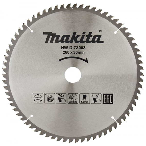 Diskas aliuminio pjovimui MAKITA Standard 260x30 mm Z70
