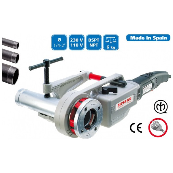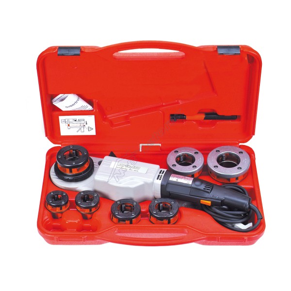 Komplektacija: elektrinis sriegtuvas Supertronic 2000, BSPT 1/2" sriegpjovė, BSPT 3/4" sriegpjovė, BSPT 1" sriegpjovė, BSPT 1.1/4" sriegpjovė, BSPT 1.1/2" sriegpjovė, BSPT 2" sriegpjovė, naudojimo instrukcija, priedas vamzdžių laikymui, plastikinis transportavimo lagaminas